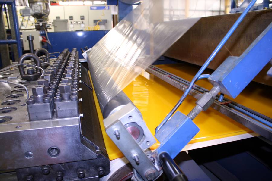 The polymer is blended in-line and extruded into solid sheet form. This sheet is then crosslinked, a process that enhances material strength, durability and temperature resistance